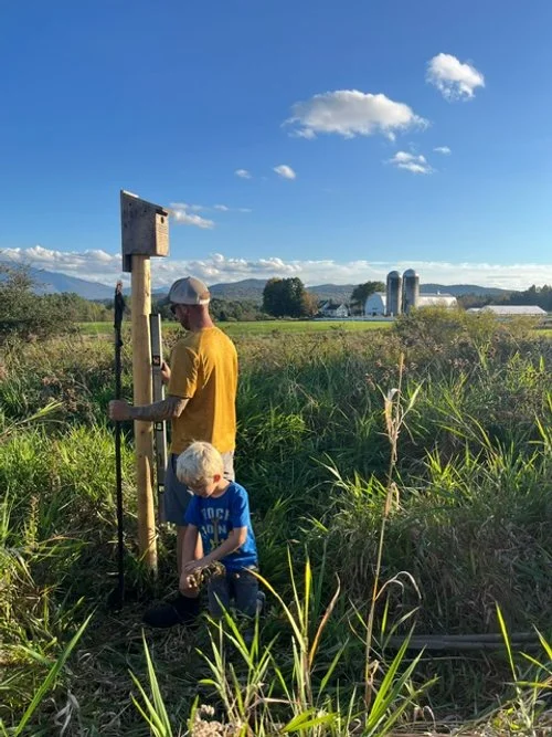 When we first purchased the farm, we hired a consulting forester and enrolled the land in the Current Use program, drafting a forest management plan to improve the forest and wildlife habitat. We logged in the winter of 2024, and we worked with our forester to ensure timber stand improvements, along with improved wildlife habitat and access. We are enrolled in the NRCS Conservation Stewardship Program and have installed nesting bird houses, released mast trees for wildlife, and are working to establish a native meadow for pollinators and beneficial insects.